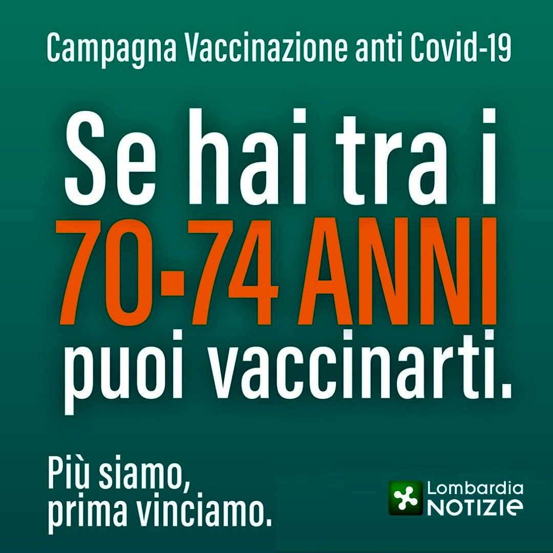 Regione Lombardia ha deciso di anticipare la possibilità di prenotazione per i cittadini ricompresi nella fascia d'età 70-74 di aderire alla vaccinazione.